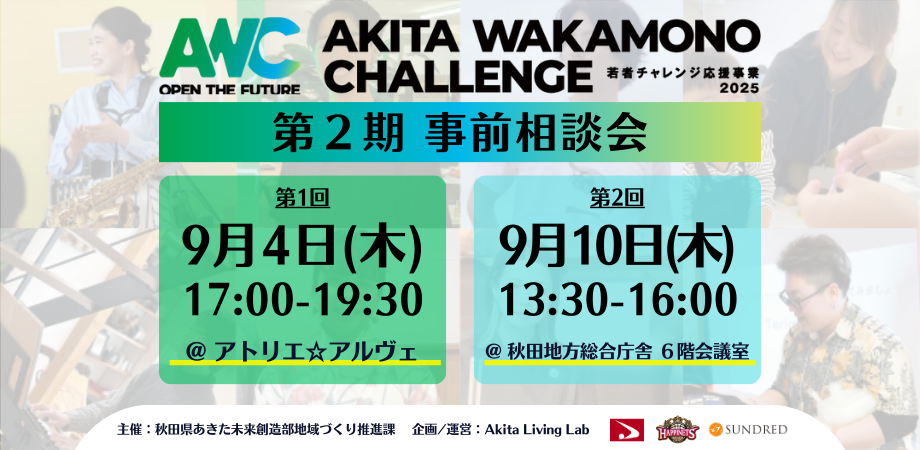「若チャレ」では、あなたが感じる秋田の魅力や可能性を最大限にいかした、地域の元気を創出する斬新なアイデアを募集します。地域課題の解決や新たな産業の創出、文化の発信など、テーマは自由です。採択者には、スキルアップや実践に必要な経費を「2年間で最大400万円※」まで助成するほか、多彩なコミュニティとの接続や専門家によるメンタリングなどの伴走支援を提供し、あなたの夢の実現を強力にサポートします。