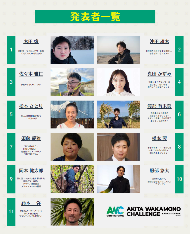 11/3(月)開催の令和7年度若者チャレンジ応援事業・最終審査会に参加する11組のファイナリストと発表順をご紹介します。